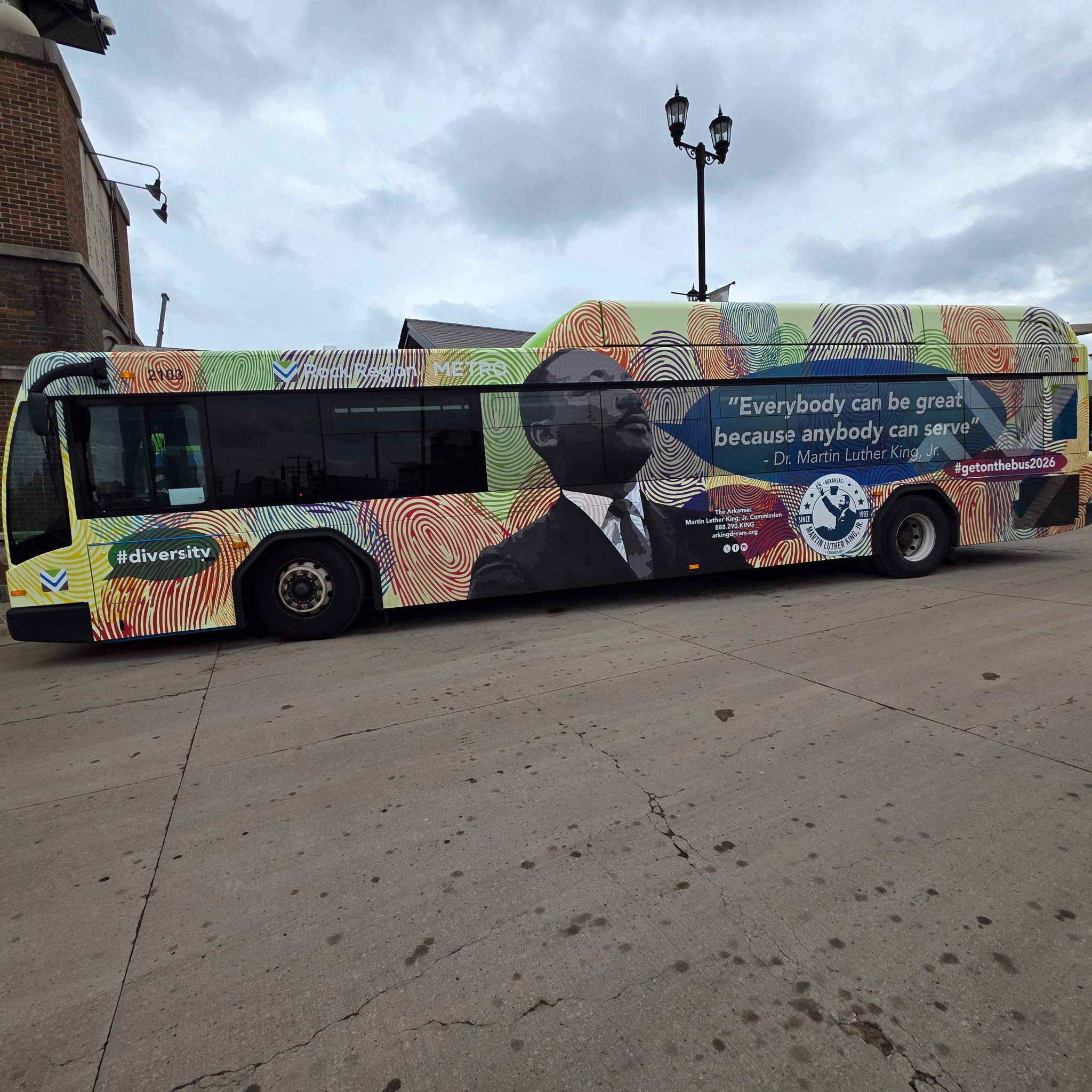 The King Bus serves as a moving tribute to the life, legacy, and leadership of Dr. Martin Luther King, Jr., symbolizing service, unity, education, and civic engagement throughout the State of Arkansas. This partnership between the Commission and Rock Region Metro reflects a shared commitment to community impact and historical preservation.