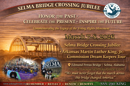 Celebrating 100 years of Black History, the Arkansas Martin Luther King, Jr. Commission will gather in remembrance and celebration of the historic Selma to Montgomery Marches and the brave men, women, and children who crossed the Edmund Pettus Bridge in pursuit of voting rights and human dignity.
