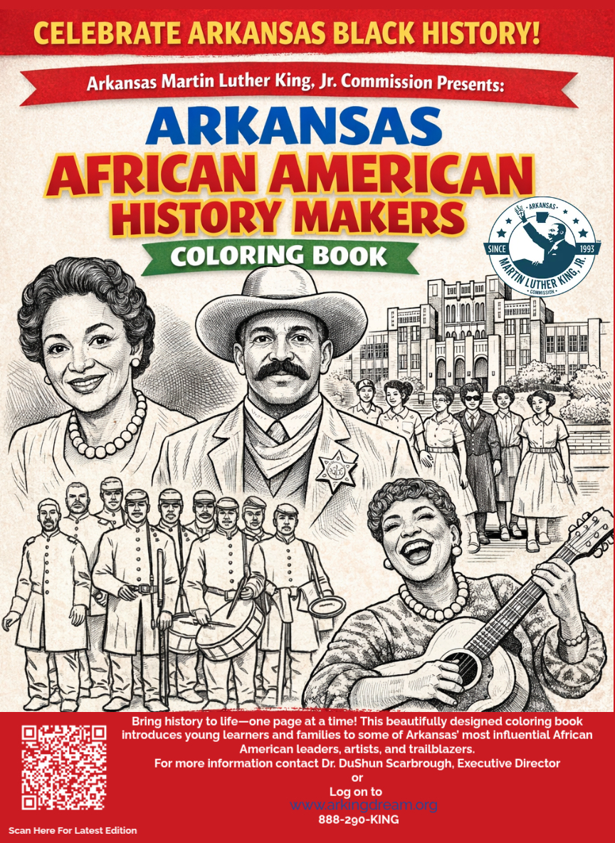 Celebrating 100 years of Black History, The Arkansas Martin Luther King, Jr. Commission presents the Arkansas African American History Makers Coloring Book.