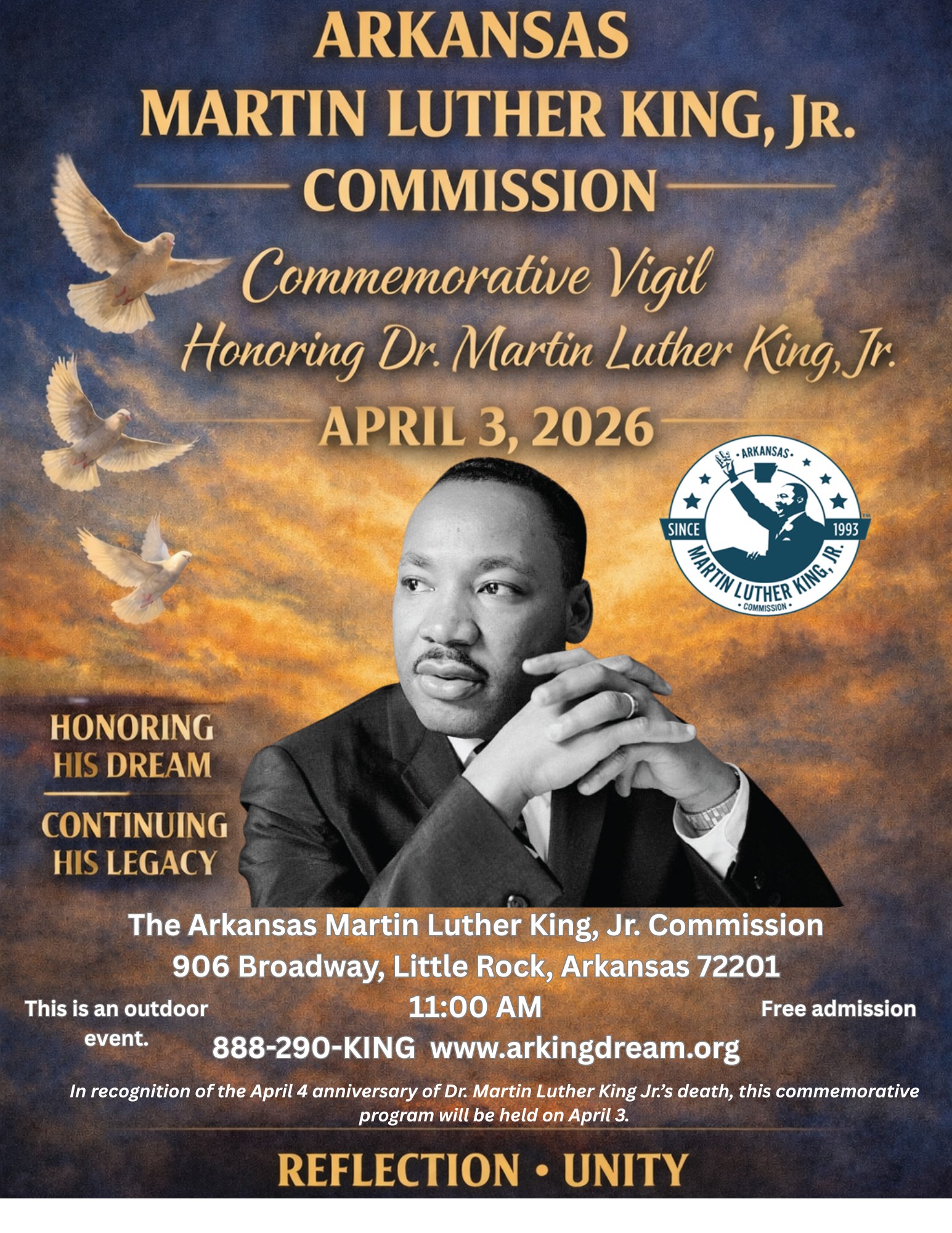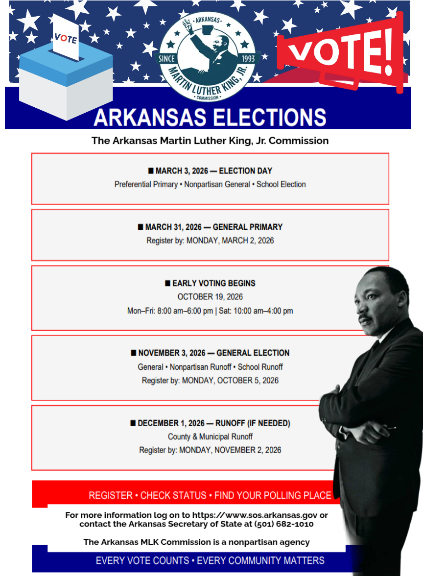 For more information or media inquiries, please contact the Arkansas Martin Luther King, Jr. Commission at 888-290-KING or www.arkingdream.org.