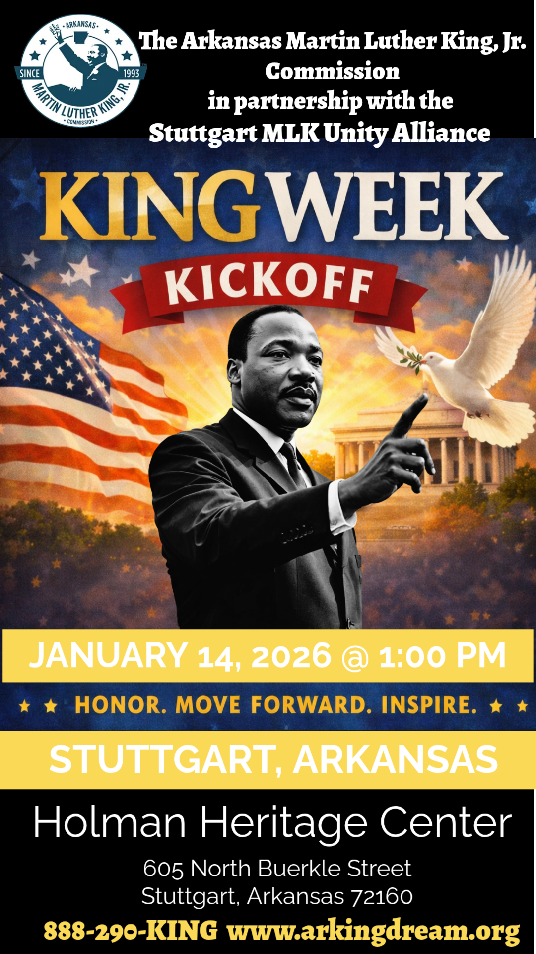Join us in Stuttgart as we kick off King Week 2026 with a symbolic dove release and Ribbon Cutting Ceremony celebrating unity, service, and community empowerment.